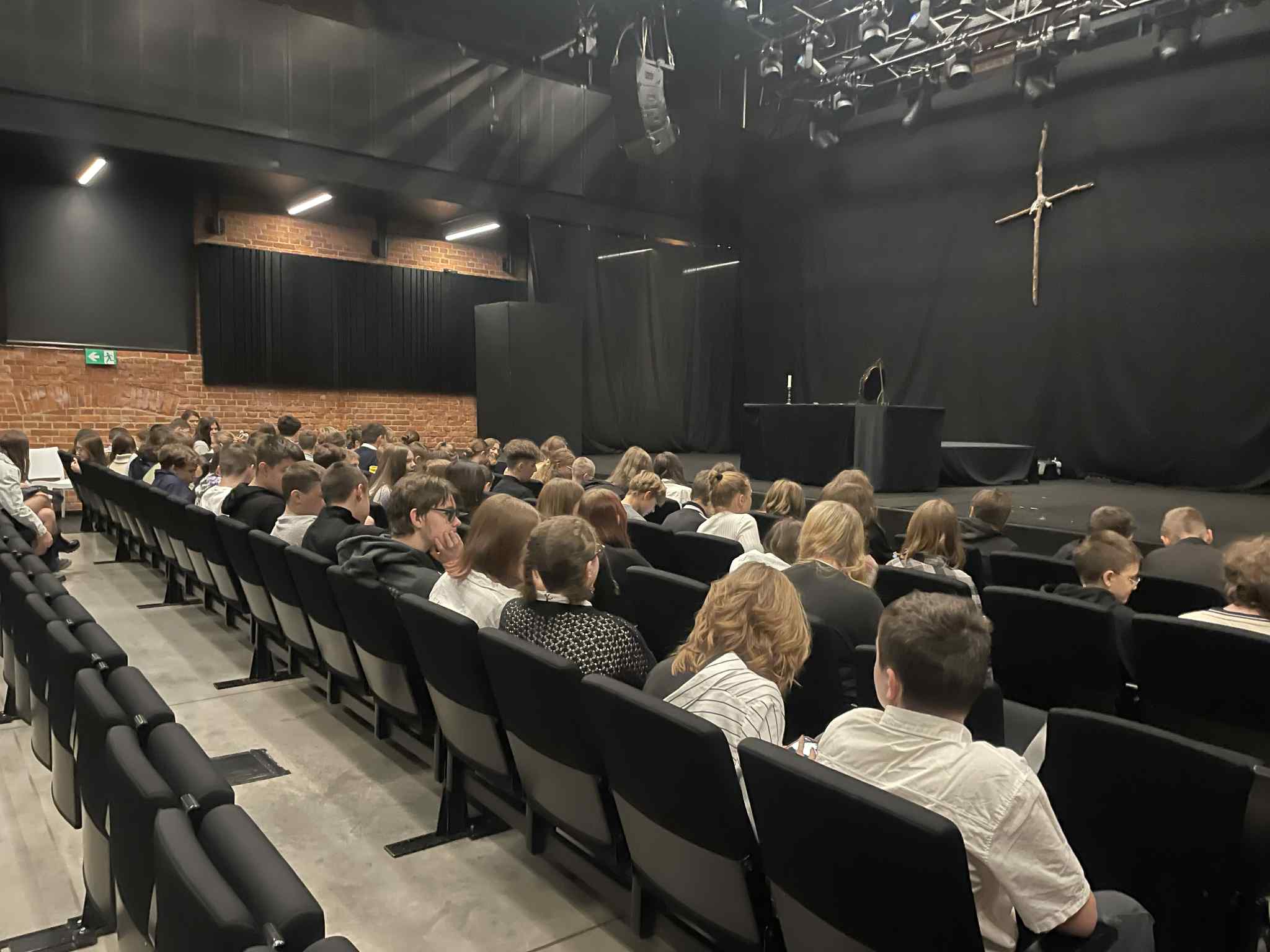 W dniu 14.11.2025r. uczniowie klas VIIa i VIIb wraz z nauczycielami udali się do Teatru Monopolis, aby obejrzeć spektakl „Dziady” cz.II na podstawie dramatu Adama Mickiewicza. Przedstawienie stanowiło wartościowe uzupełnienie pracy z lekturą, pozwalając uczniom lepiej zrozumieć jej treść, symbolikę oraz kontekst epoki. Uczniowie z zainteresowaniem śledzili spektakl, zwracając uwagę na grę aktorską, interpretację scen i efekty sceniczne.