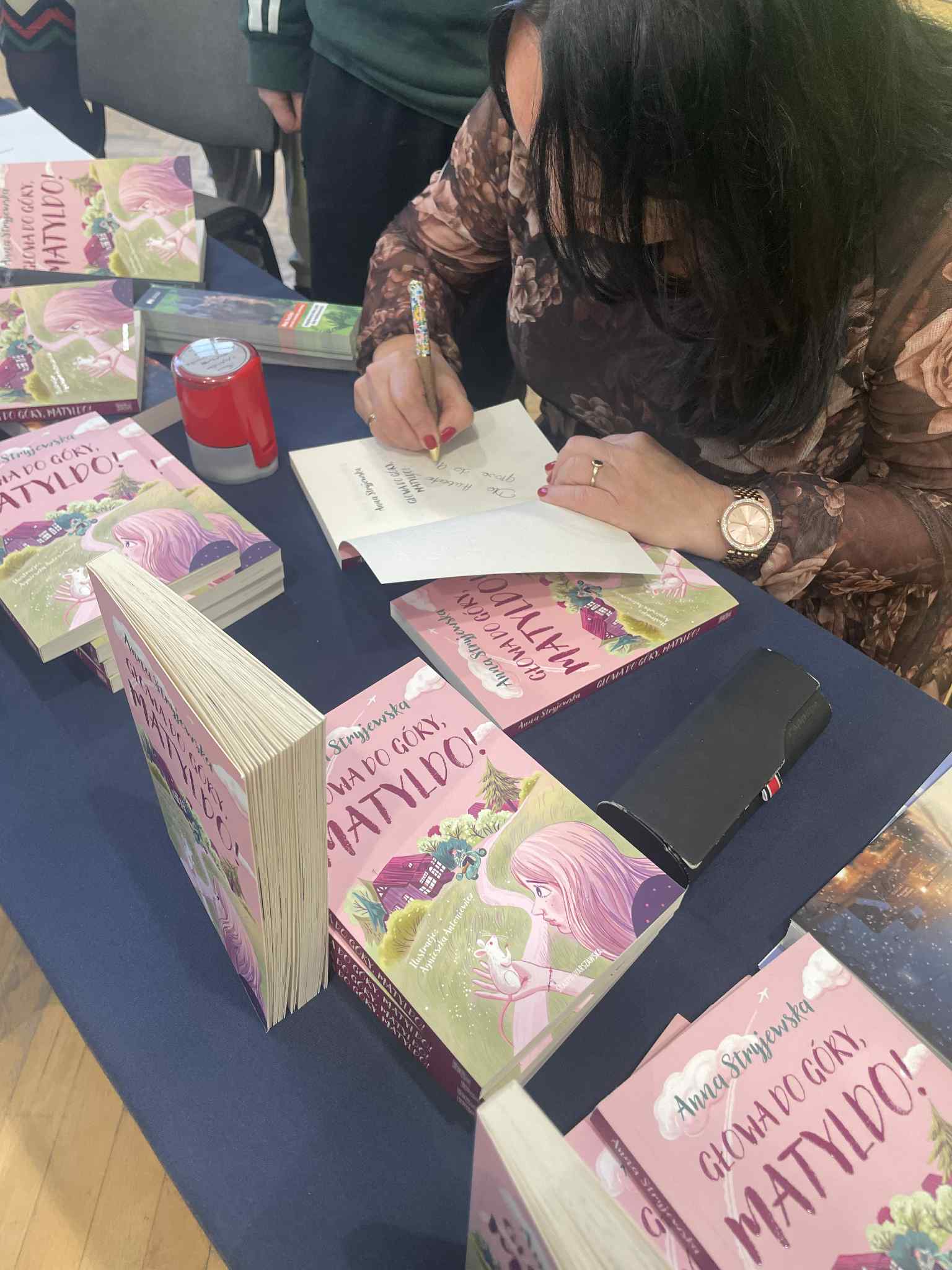W naszej szkole mieliśmy przyjemność gościć łódzką pisarkę Annę Stryjewską. Podczas spotkania autorka zaprezentowała swoją książkę dla młodzieży pt. „Do góry głowa, Matyldo”. W książce poruszane są niezwykle ważne tematy, takie jak akceptacja siebie, walka z kompleksami oraz radzenie sobie z hejtem i presją rówieśniczą. W czasie spotkania uczniowie mieli okazję wypowiedzieć się na istotne dla nich kwestie, podzielić się swoimi pasjami oraz doświadczeniami. Oczywiście nie zabrakło również czasu na zadawanie pytań naszemu gościowi. Było to inspirujące i pełne dobrej energii spotkanie. Dziękujemy pani Annie Stryjewskiej za wizytę oraz wartościowe spotkanie, które na długo pozostanie w pamięci naszych uczniów.Spotkanie uczniów z pisarką Anną Stryjewską